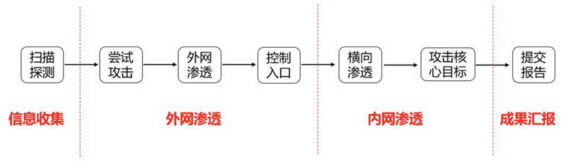 借鑒于我國軍事對抗演習的概念,安全攻防演練服務是指針對企業的指定信息設施和系統,是一項非破壞性質的攻防實戰演練。在指揮方的統一設計和監督下,采用紅藍兩方對抗形式,紅隊模擬黑客進行攻擊、藍隊模擬運維人員負責防守,進行網絡攻防演練的專業技術服務。
