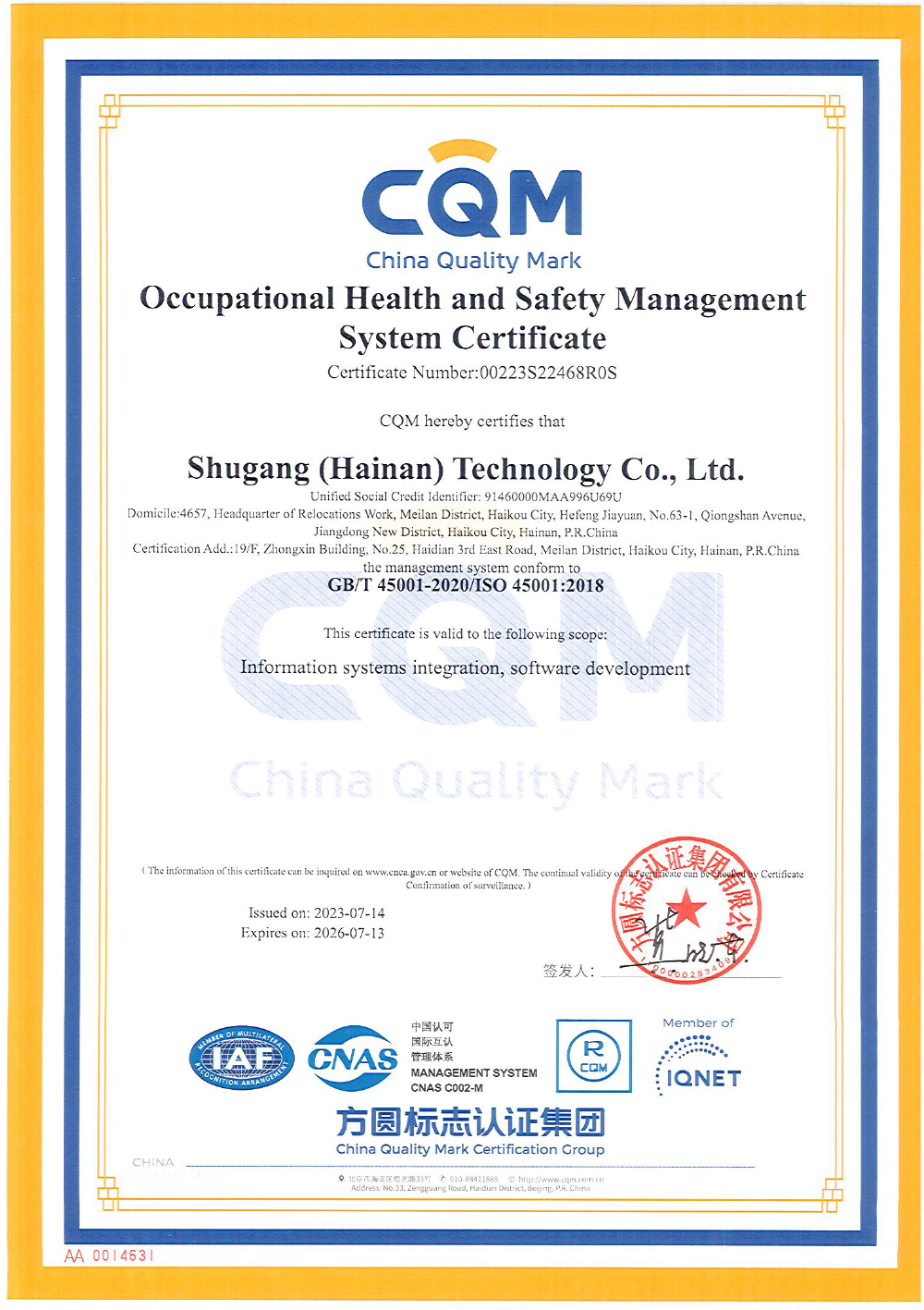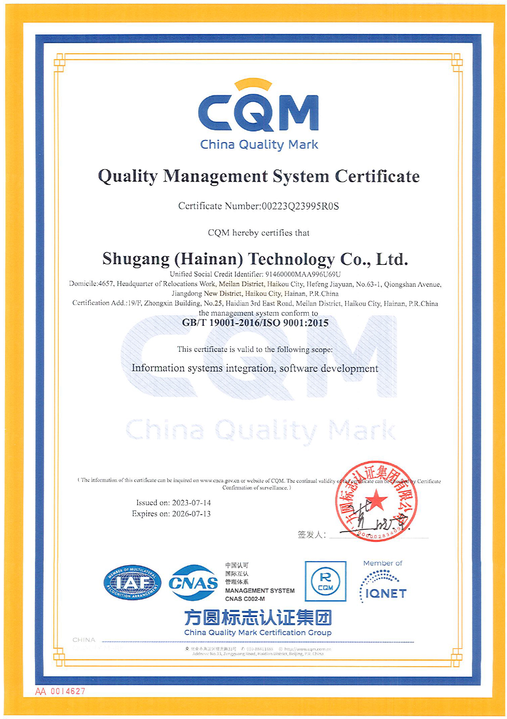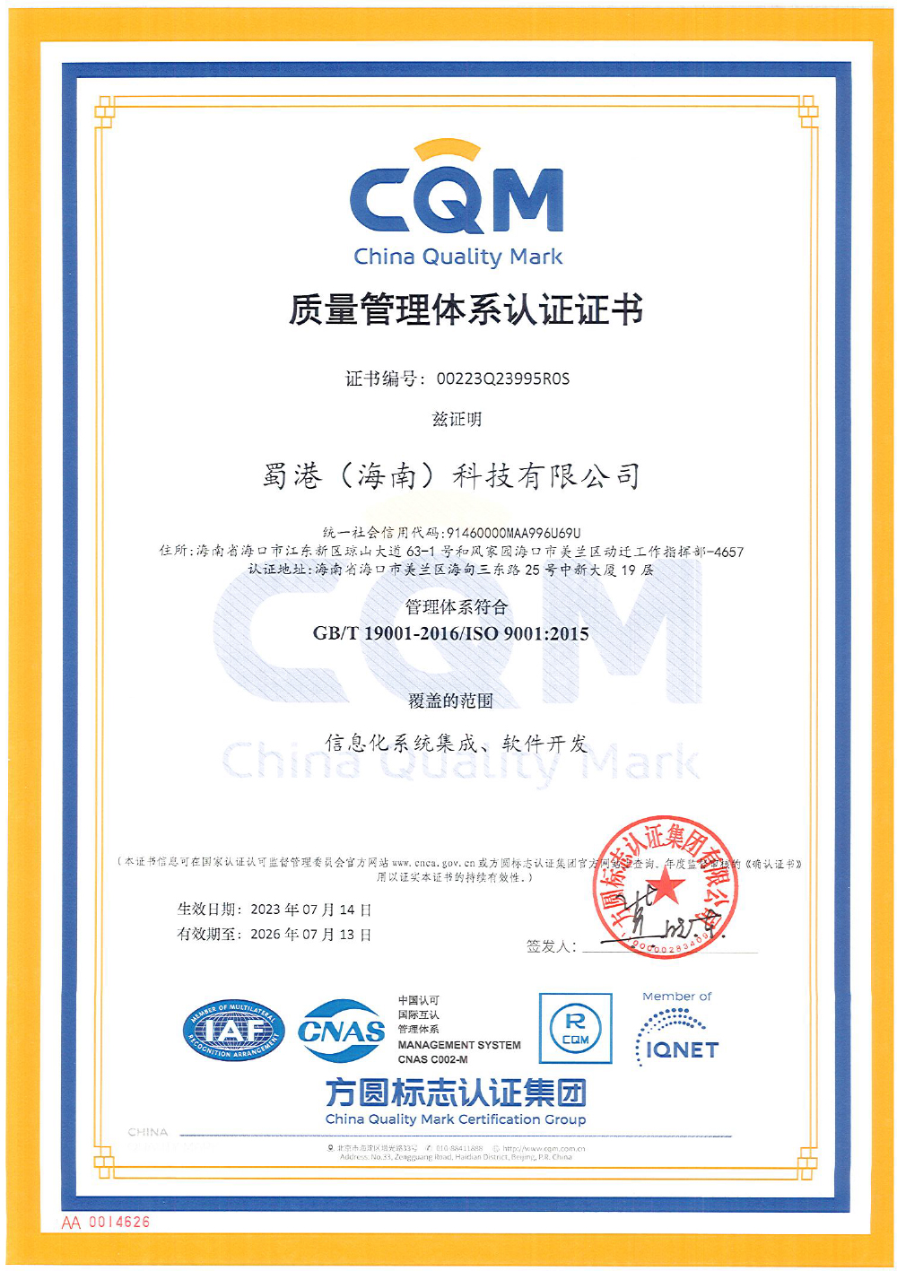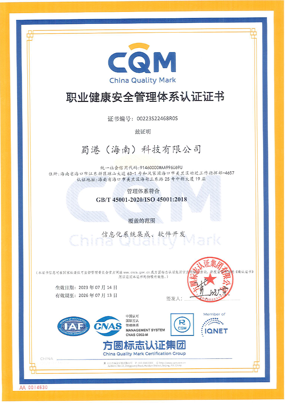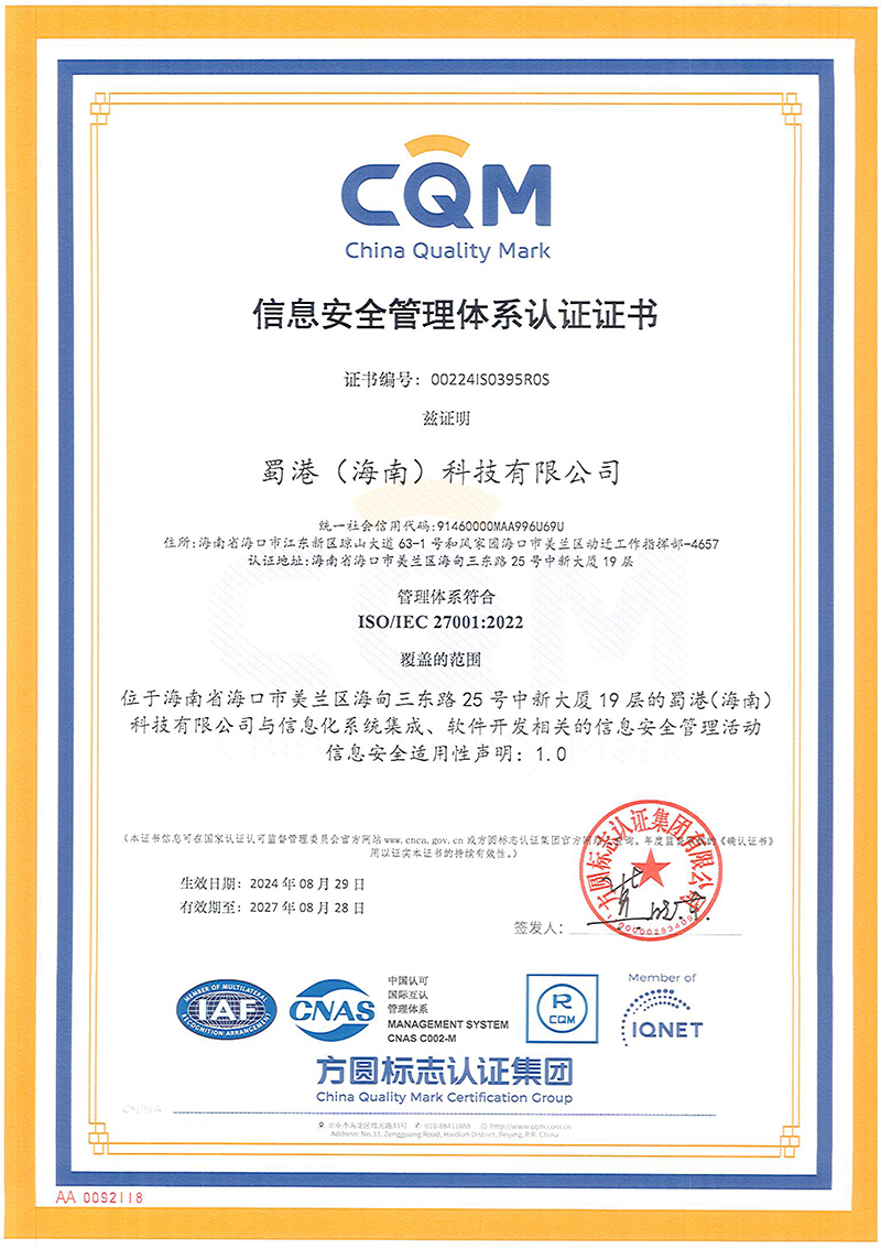 - 蜀港(海南)科技ISO認(rèn)證電子證書-2023-2