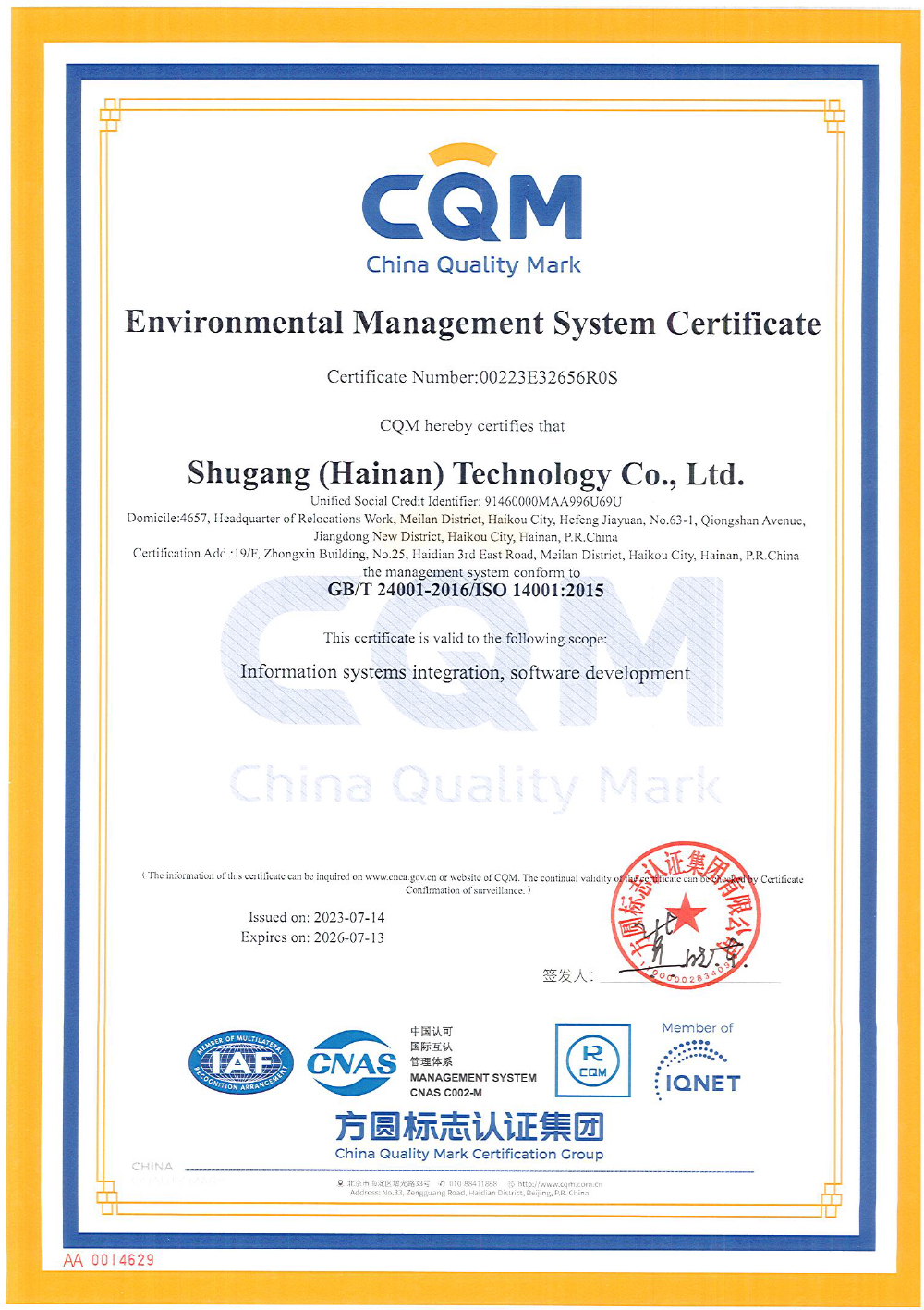 - 環(huán)境管理體系認(rèn)證證書